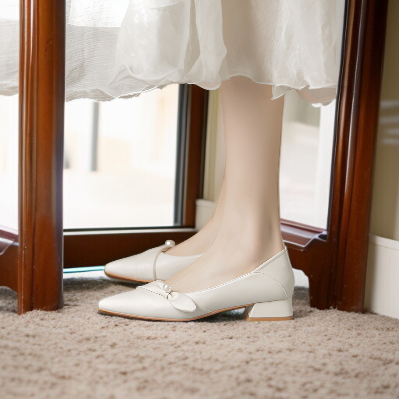 女性用ハイヒール、厚底ヒール、新しいフレンチスタイルのハイヒール、気質のある尖ったつま先ミディアムヒール、四季対応のソフトレザーハイヒール、快適な四季対応の靴