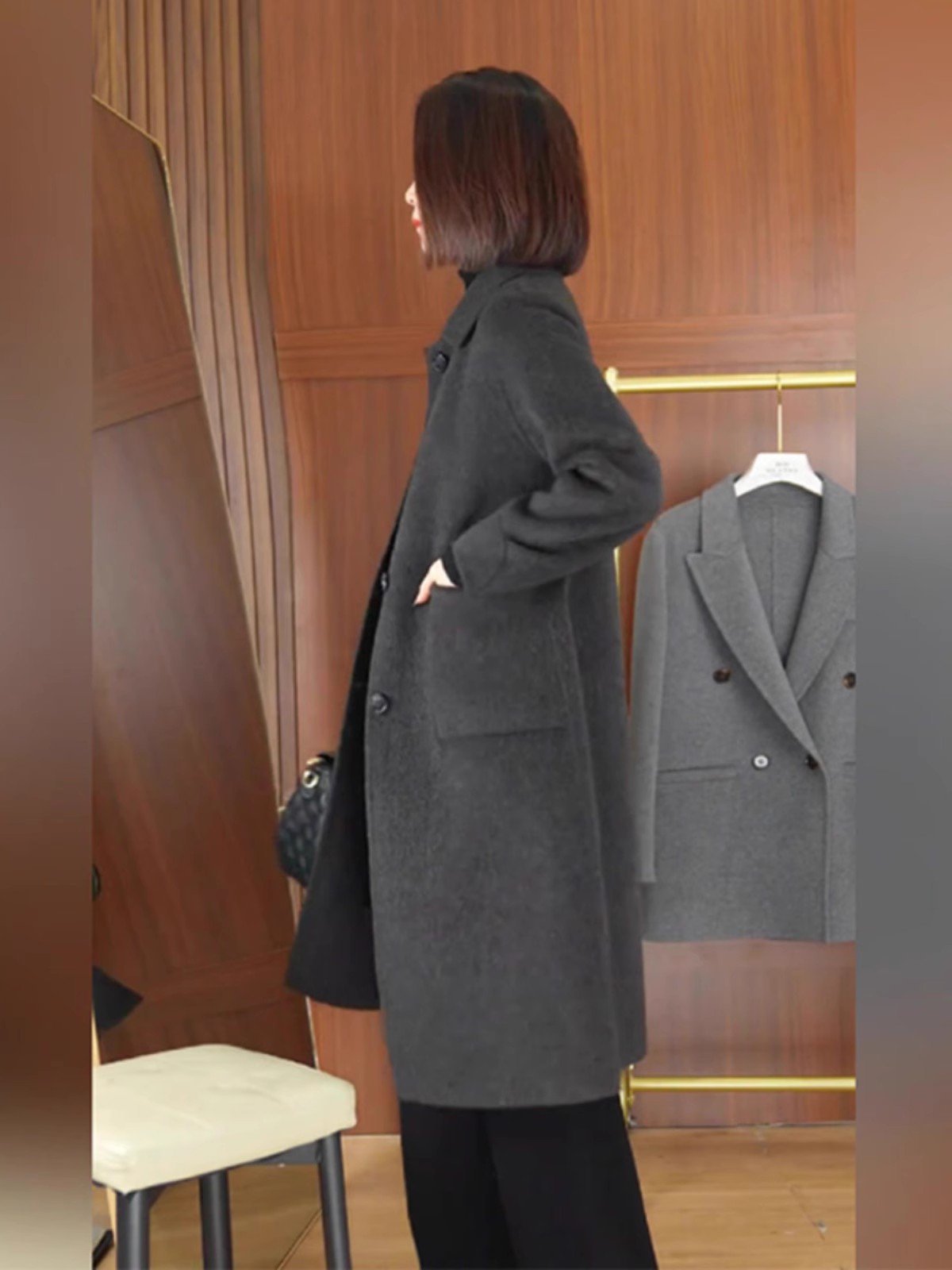 韓国風ロング丈カシミヤコート